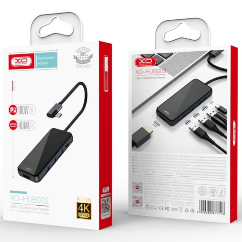 USB HUB XO HUB002 Type-C – якісний хаб для щоденного використання. Тут вбудовані 3USB порти, HDMI 4K 30Hz та Type-C з підтримкою PD 100W. HUB працює без додаткових драйверів.