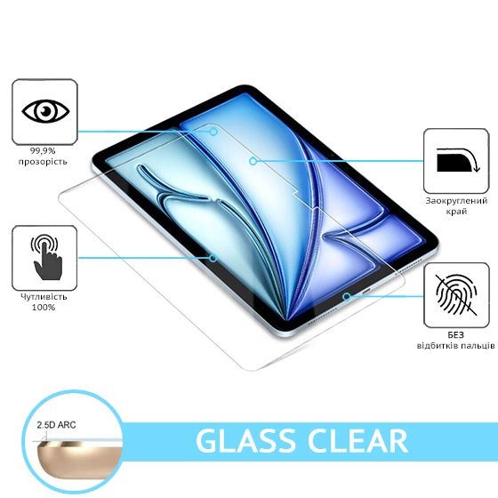 Захисне скло Glass Clear призначається для захисту екрану планшета Apple iPad Air 11" (2024) від подряпин та пошкоджень, для збереження його цілісності під час експлуатації.