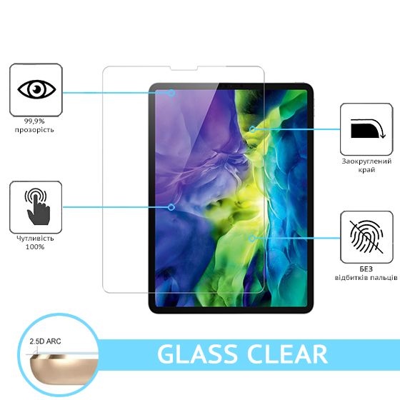 Захисне скло Glass Clear призначається для захисту екрану планшета Apple iPad Pro 11" (2021) від подряпин та пошкоджень, для збереження його цілісності під час експлуатації.