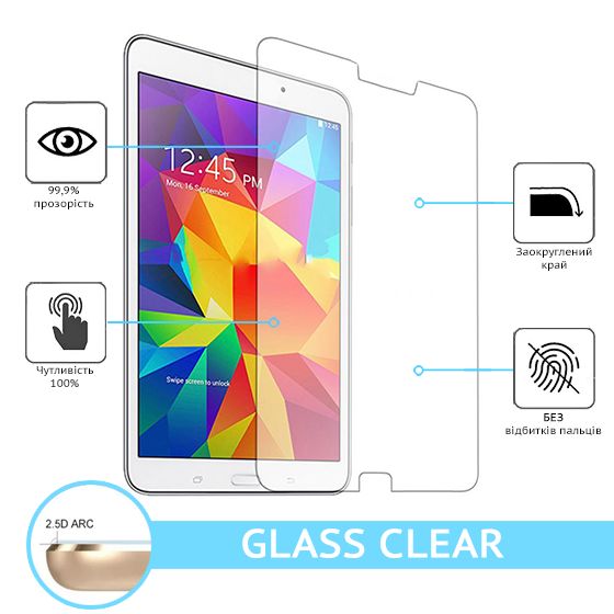 Захисне скло Glass Clear призначається для захисту екрану планшета Samsung T230 Galaxy Tab 4 7.0 від подряпин та пошкоджень, для збереження його цілісності під час експлуатації.