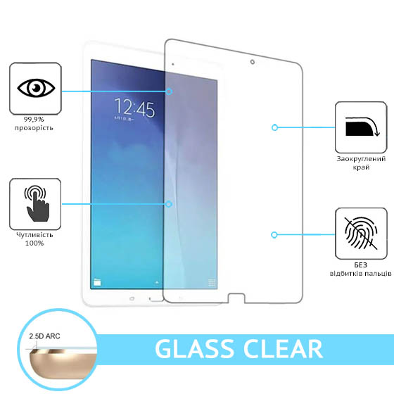 Захисне скло Glass Clear призначається для захисту екрану планшета Samsung T560/T561 Galaxy Tab E 9.6 від подряпин та пошкоджень, для збереження його цілісності під час експлуатації.