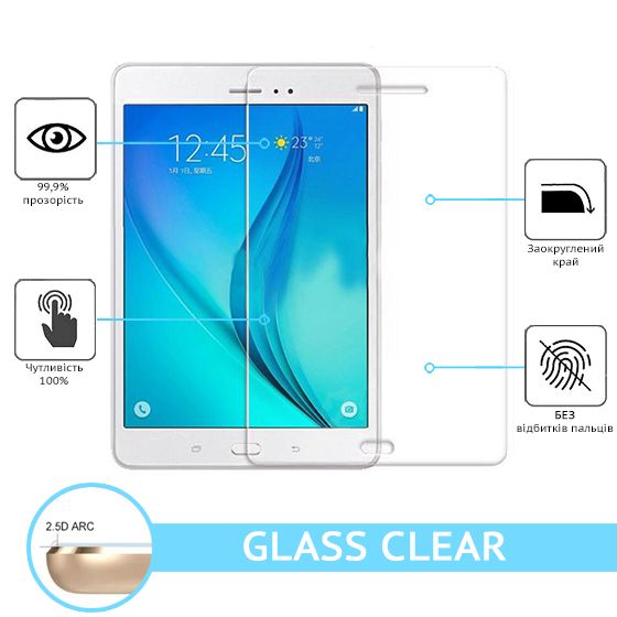 Захисне скло Glass Clear призначається для захисту екрану планшета Samsung T350/T355 Galaxy Tab A 8.0 від подряпин та пошкоджень, для збереження його цілісності під час експлуатації.