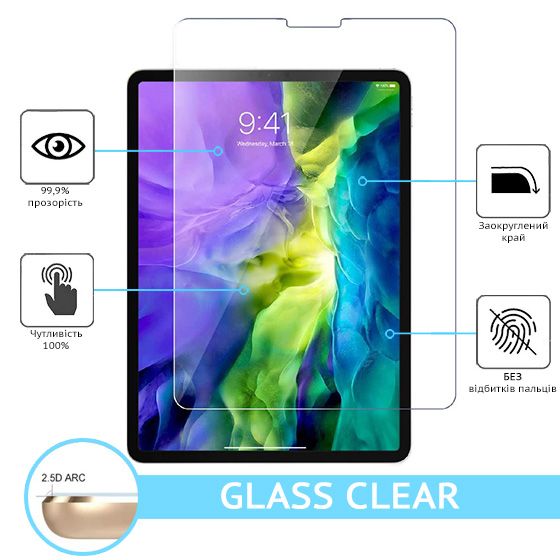 Захисне скло Glass Clear призначається для захисту екрану планшета Apple iPad Pro 12.9 (2018/2020) від подряпин та пошкоджень, для збереження його цілісності під час експлуатації.
