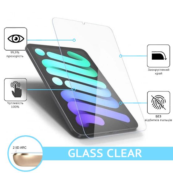 Захисне скло Glass Clear призначається для захисту екрану планшета Apple iPad mini 6 від подряпин та пошкоджень, для збереження його цілісності під час експлуатації.